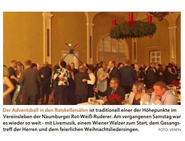 Mit seinem beliebten Adventsball in den Ratskellersälen hat der Naumburger Ruderverein Rot-Weiß den offiziellen Teil seines umfangreichen Jahresprogramms beendet....
