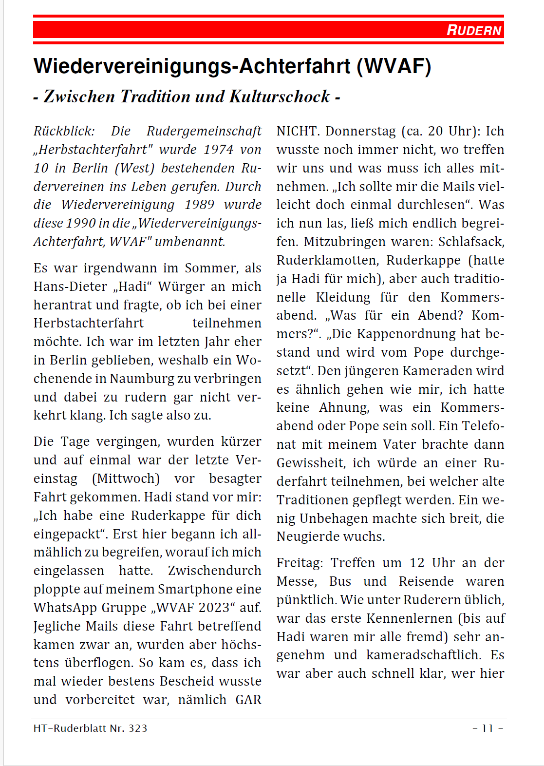 Bald ist es wieder soweit. Am 01.11.2024 fährt eine Truppe von 9 Männern nach Berlin zur WVAF 2024. Im letzten Jahr fand diese Veranstaltung in Naumburg statt. Hier ein Bericht eines Bierfuchses von Hellas Titania Berlin. Bitte einfach auf die einzelnen Seiten klicken, dann könnt Ihr diesen Bericht besser lesen!
